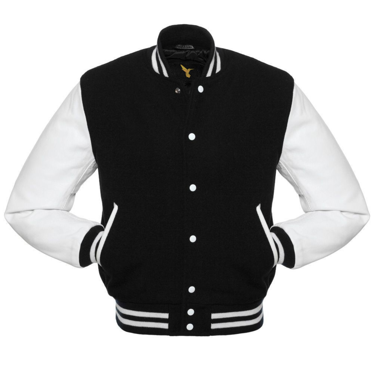 Black Wool Body & White Leather Sleeves Varsity Jacket