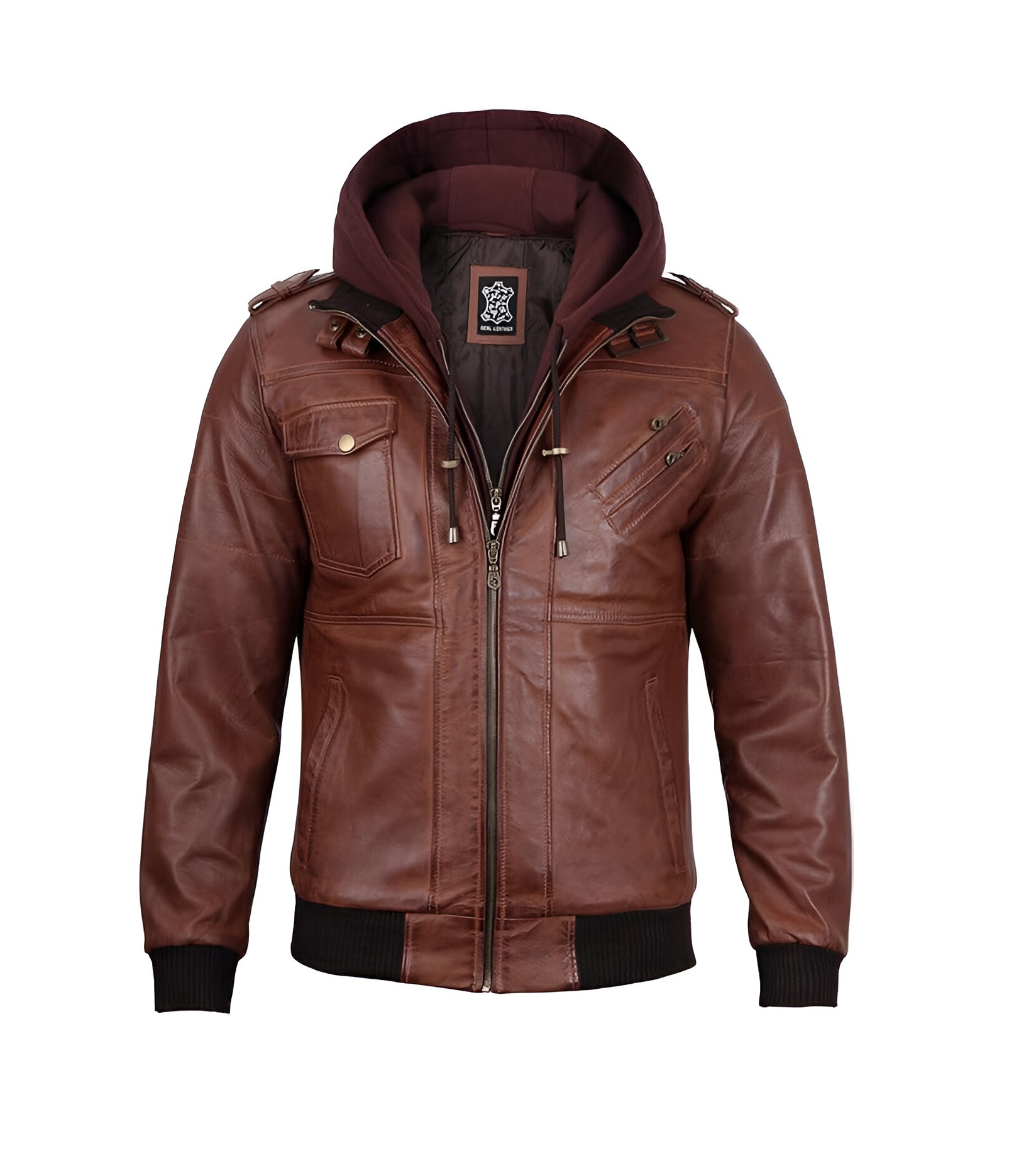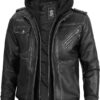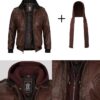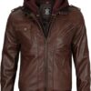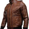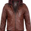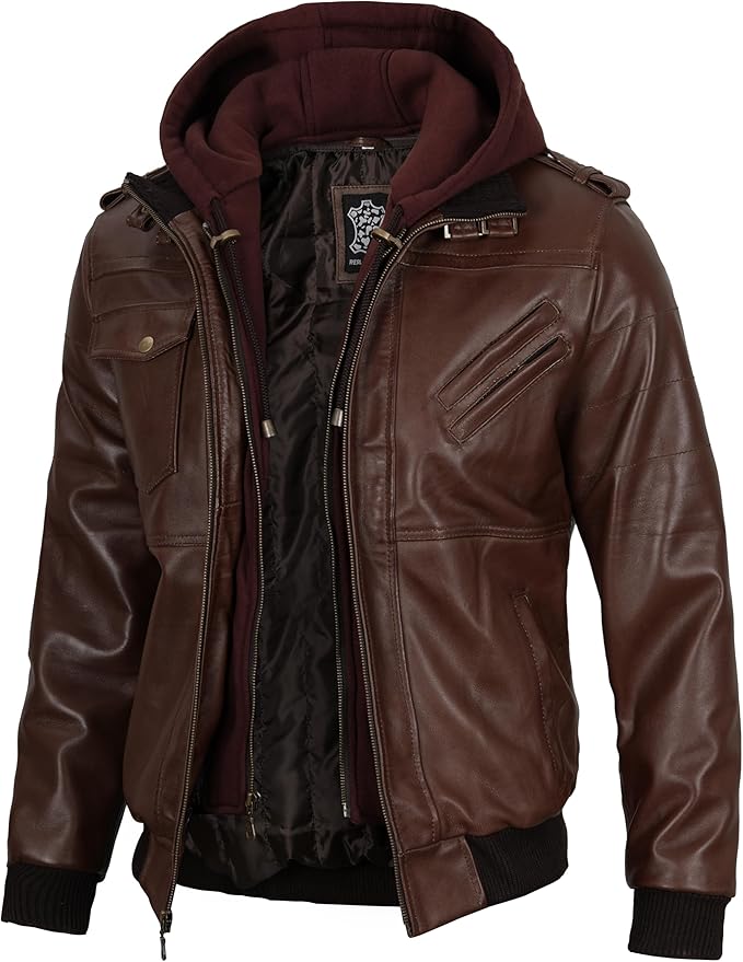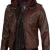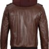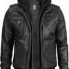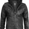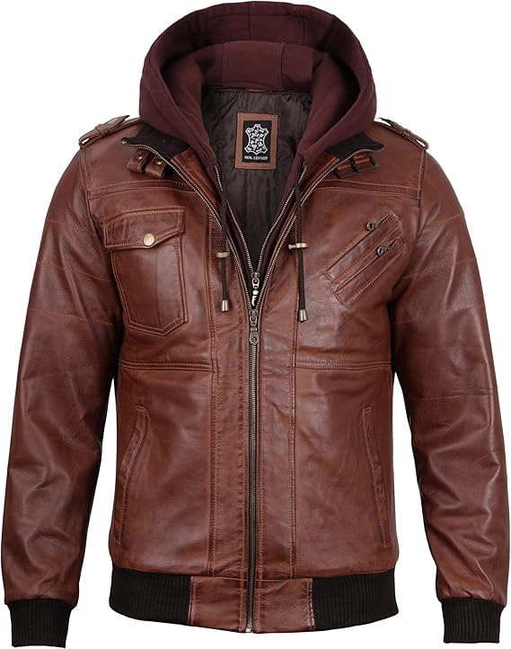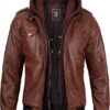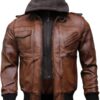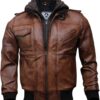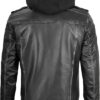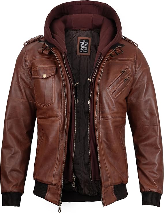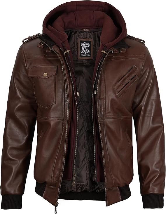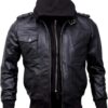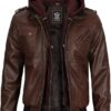 Men’s Genuine Lambskin Leather Bomber Jacket with Removable Hood
